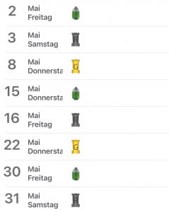 Die Gruben werden am Entsorgungstag ab 6:15 Uhr bis 14 Uhr entleert.