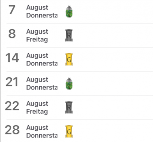 Bitte rechtzeitig im Schaukasten rechts anmelden.